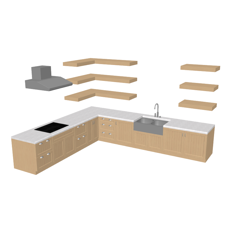 【L型キッチン 輸入キッチン】の3Dモデル・3Dデータ素材です。